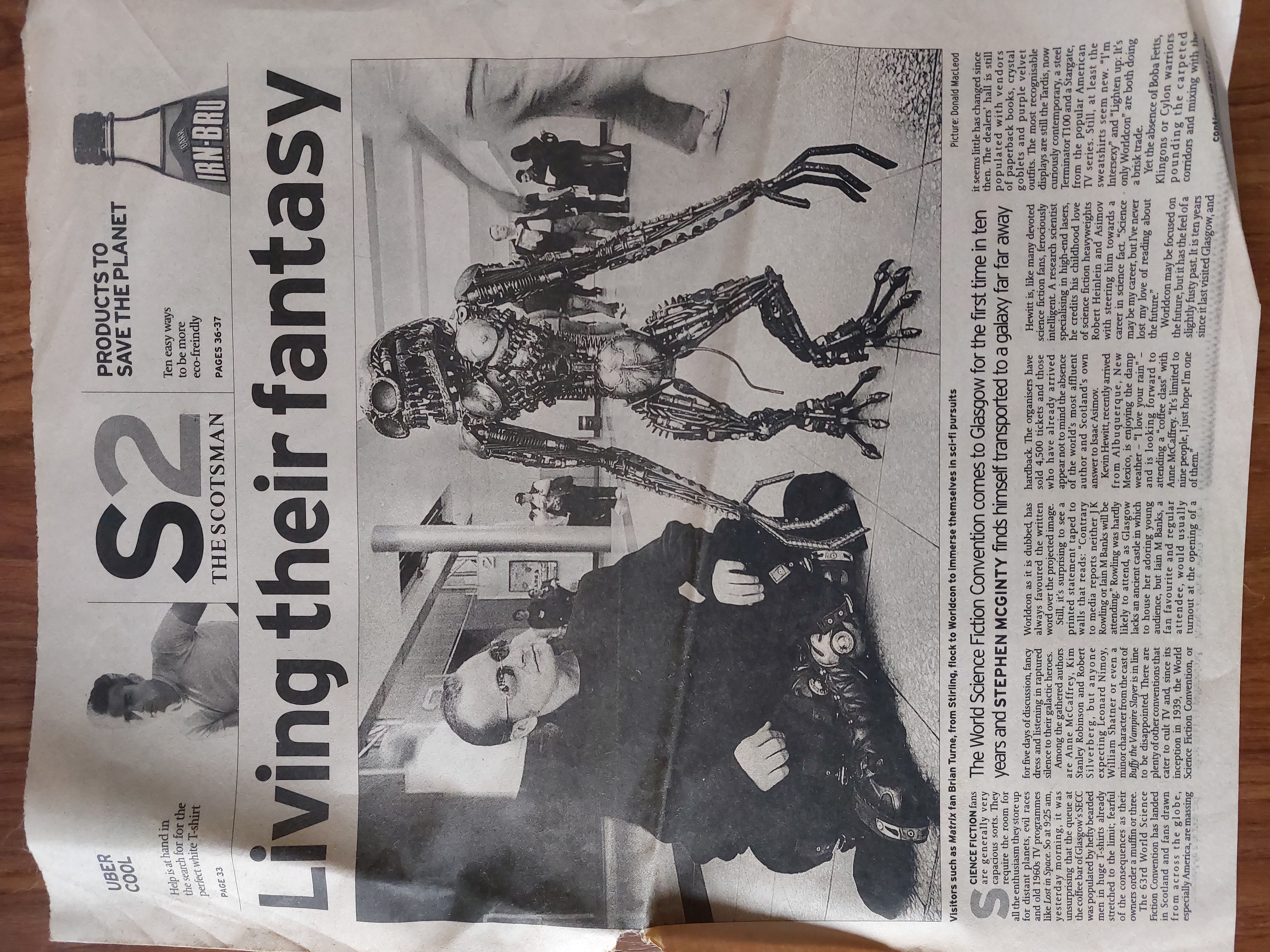 In 2005 he moved with his wife and three children to Scotland, renting for a year near Stirling. This made it easy for him to attend and set up a stall promoting the chronicles community at Worldcon – the international science fiction and fantasy convention – in Glasgow the following year, at which he met with bestselling authors such as Terry Pratchett and George R R Martin. The Scotsman newspaper coverage of the event featured a photo of Brian, dressed like a character from The Matrix movies, posing with a small robot.